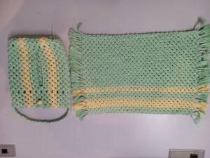 今日はマクラメ紐を使って制作された作品を紹介します。